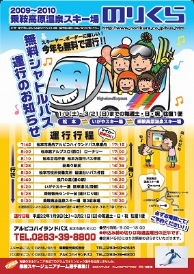 松本市内から乗鞍高原行きの無料シャトルバスが